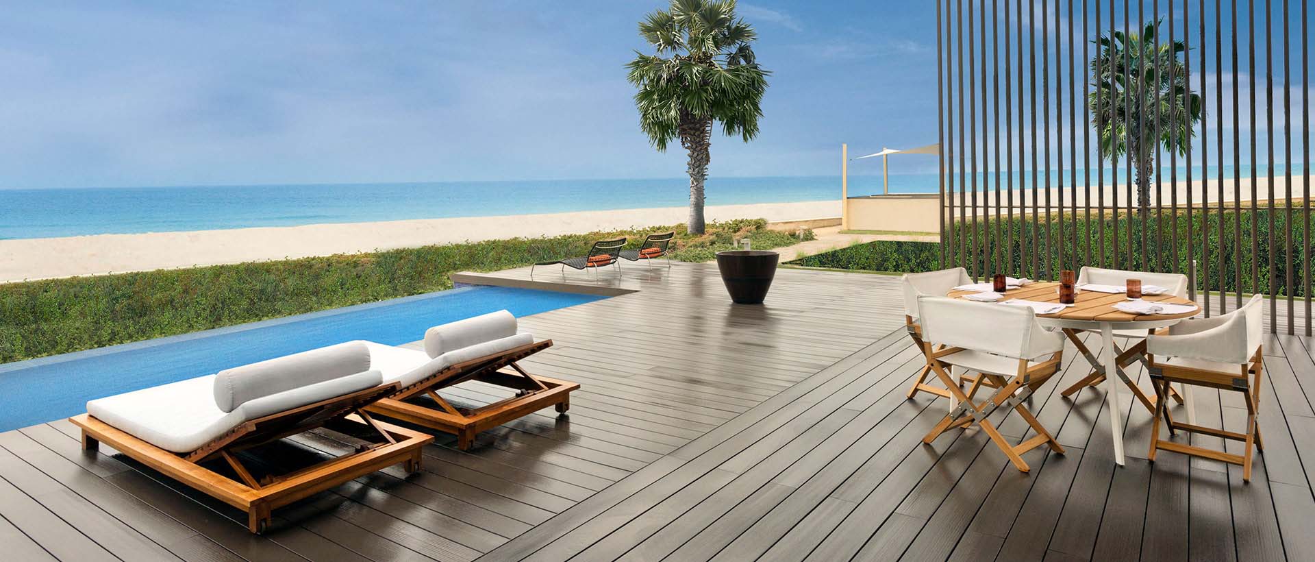 Просторный люкс Premier площадью 169 м2 имеет спальню размера "king-size" и отдельную террасу (37 м2), на которую можно заходить через отдельную гостиную. С террасы и через окна открывается потрясающий вид на океан и ежедневные закаты.