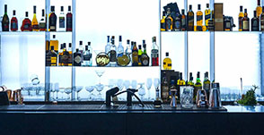 В меню бара входят классические коктейли, международные изысканные вина и премиальные алкогольные напитки. В баре также есть широкий ассортимент солодов и кубинских сигар.